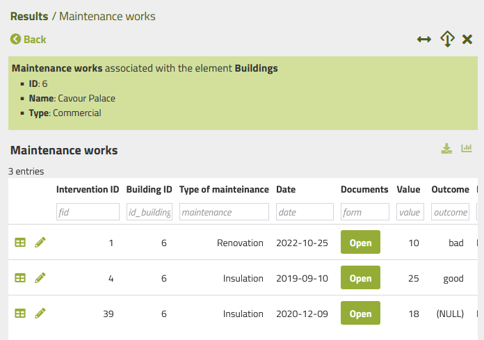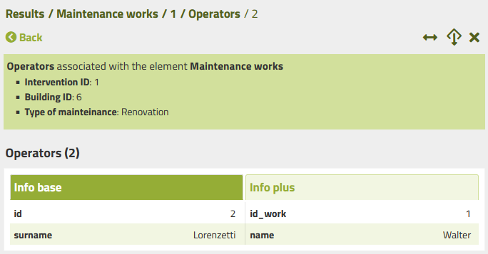 References to the parent are visible when accessing the list of records in the child layer of a 1:N relation.