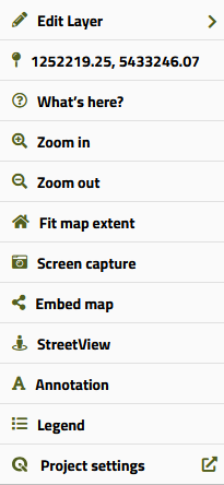 A right click on the mouse allows you to access a series of functions related (but not limited to) to the point where you click